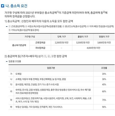 *위의 표에서 총소득은 근로장려금의 신청자격 여부를 판단하는 것이고