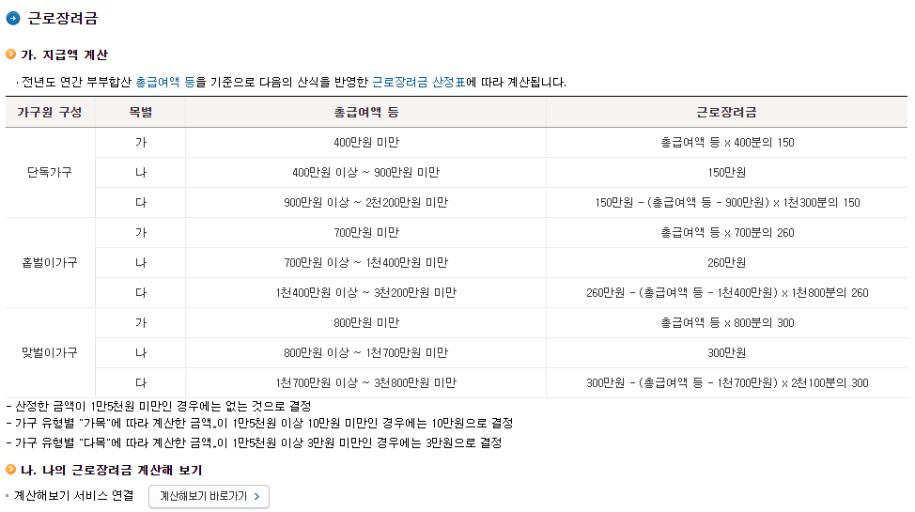 근로장려금 지급액 범위와 계산방법?